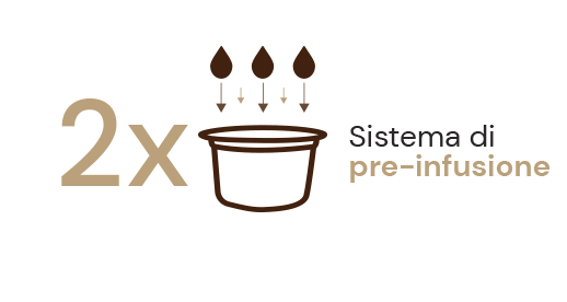 Non è una macchina, non è una capsula: è un sistema integrato che coniuga qualità e tecnologia in ogni suo dettaglio. Tutto parte dalla pre-infusione che prepara il caffè mancinato, bagnandolo in modo uniforme grazie al filtro superiore. Successivamente un sistema di doppia pressione permette di selezionare l'estrazione migliore, alta o bassa in base alle bevande, per un risultato in tazza sempre ottimale.